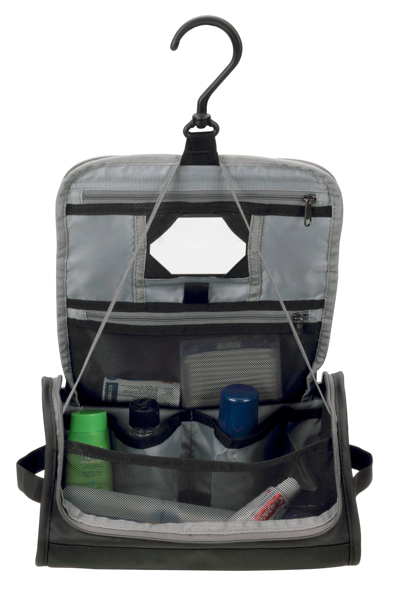 A generously sized dopp-style toiletry kit for easy counter top or hanging. Constructed of a durable and ruggedly handsome water-resistant Bi-Tech material.